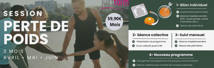 JUSTFORM, société née d’un concept novateur, cette nouvelle structure implantée dans le département du Tarn(81), allie avec aisance et simplicité, le monde du sport à celui de la santé.